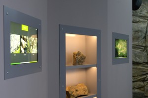 | Realizacja ekspozycji - sala geologiczna | Realizacja ekspozycji - elementy scenograficzne |
